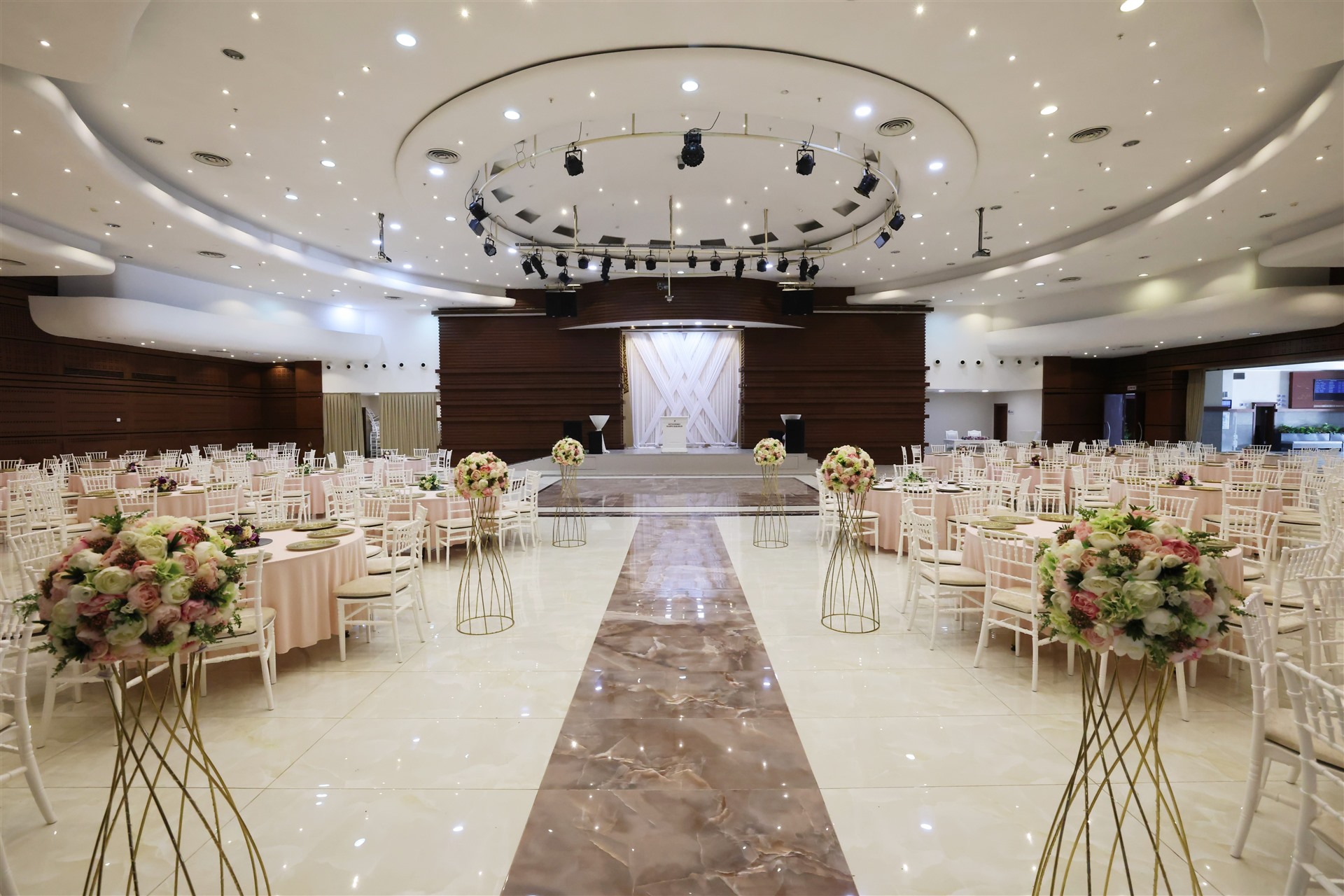 Lale Salonu’nda ise 500 kişilik bir oturma kapasitesi bulunuyor. Eğer çiftler kokteylli ya da yemekli bir nikah töreni düzenlemek isterlerse kapasitesi 600 kişiye kadar çıkabiliyor. Merkezimiz her davete uygun altyapıya sahip ve en iyi ekipmanların tercih edildiği bir merkezdir.
